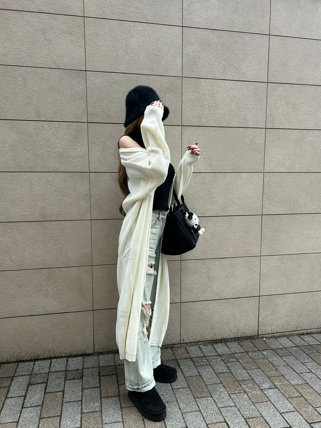 幅広いスタイリングに活躍するシンプルなホワイトロングカーディガンです。
