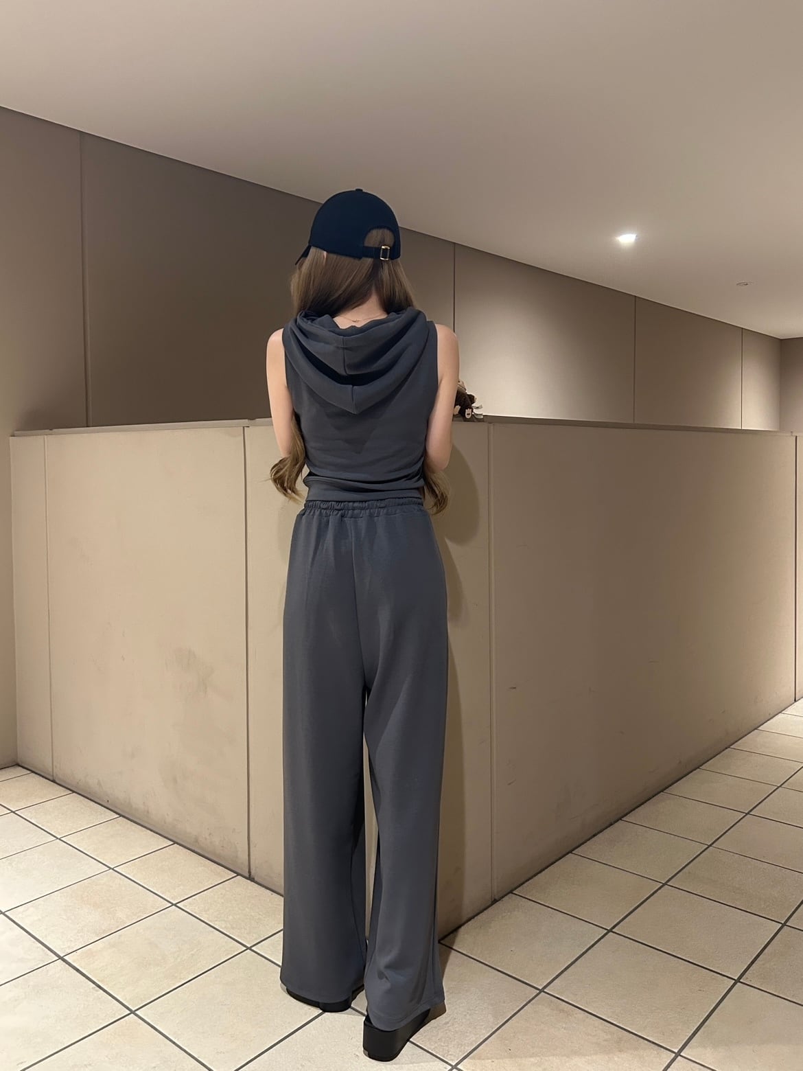 スタイリッシュなノースリーブのスウェットセットアップで、リラックスしたい日にぴったりです。