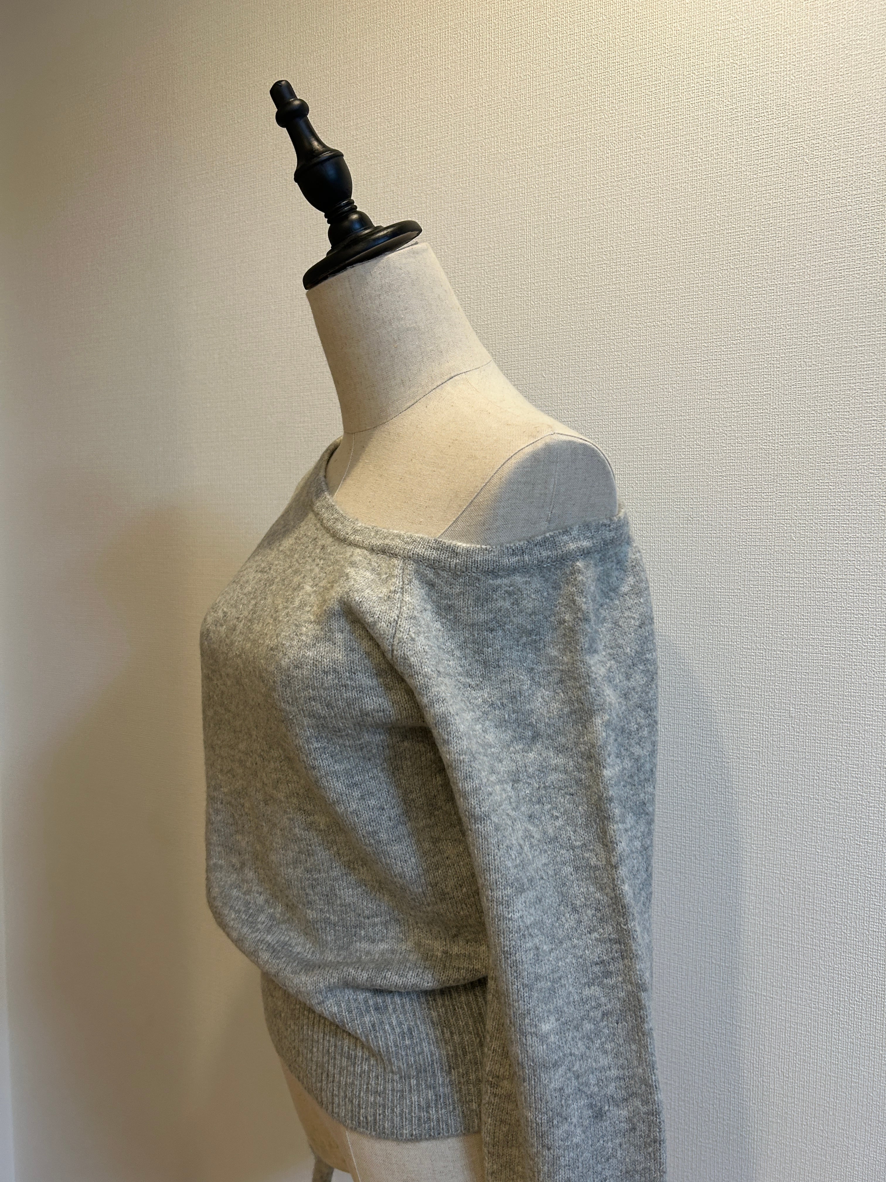 綺麗目なワンショルダーのデザインと鎖骨から肩にかけたタイトな美ラインがラフィアンらしさのあるニットです。