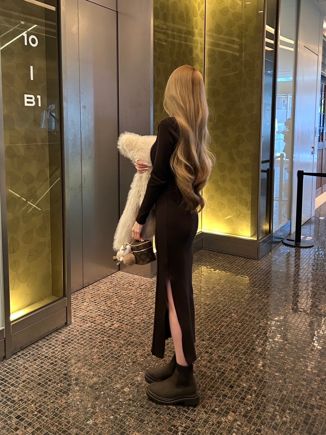 春夏にも販売をした片側スリット入りマキシワンピースが秋冬仕様となり再登場です。