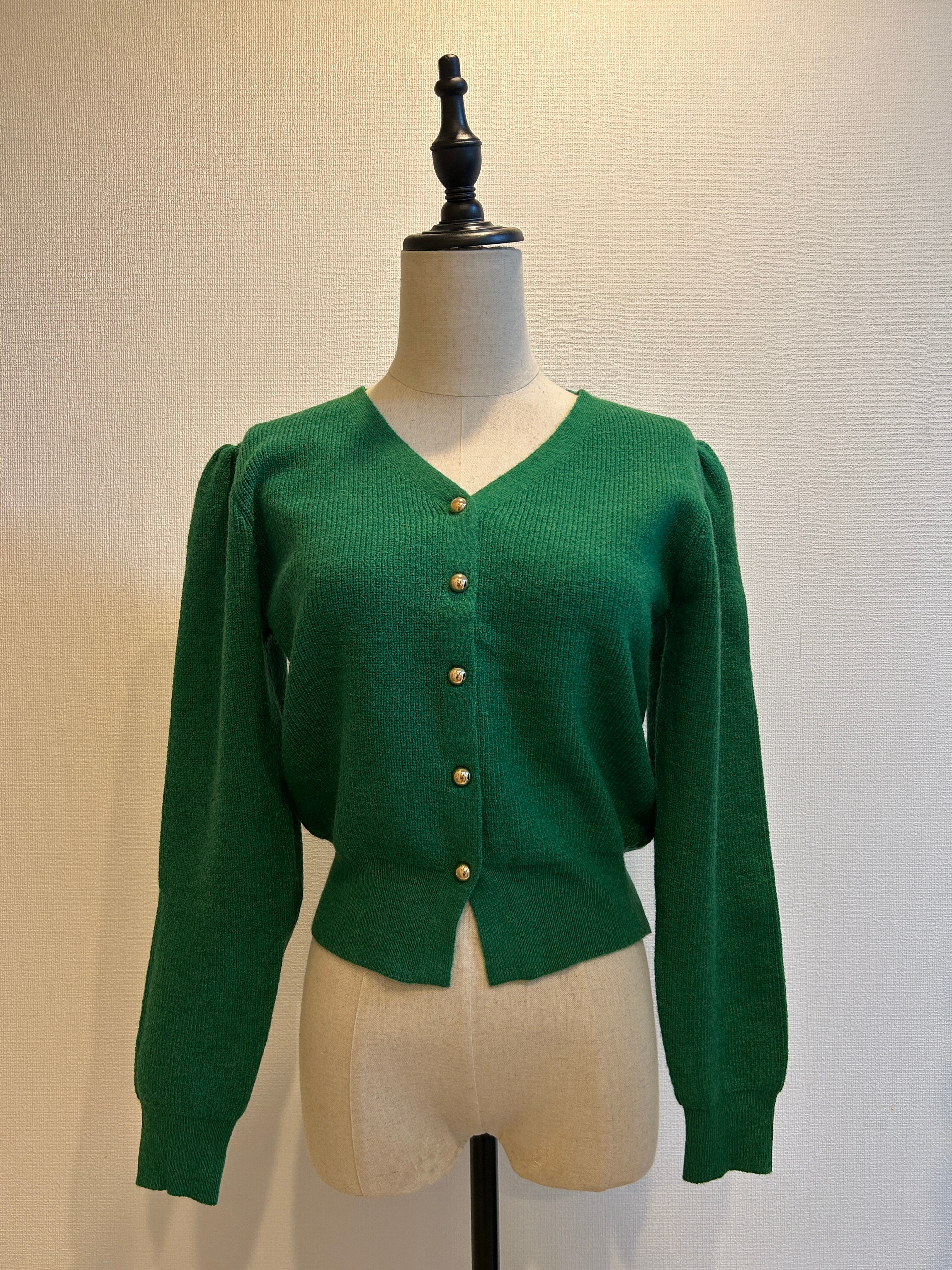 女性らしさが際立つパフショルダーデザインのすっきりとした細身のカーディガン。
