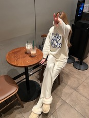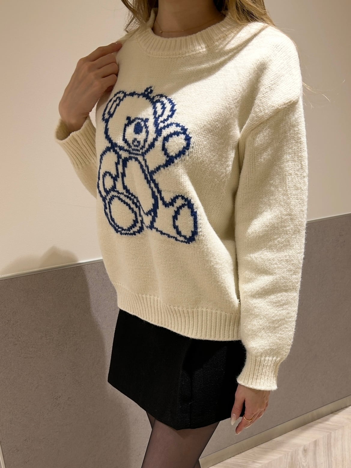 くまさんのデザインが可愛らしさを引き立てる一着でカジュアルから綺麗目コーデは勿論、ラフスタイルまでどんなスタイリングにも合わせやすいです。