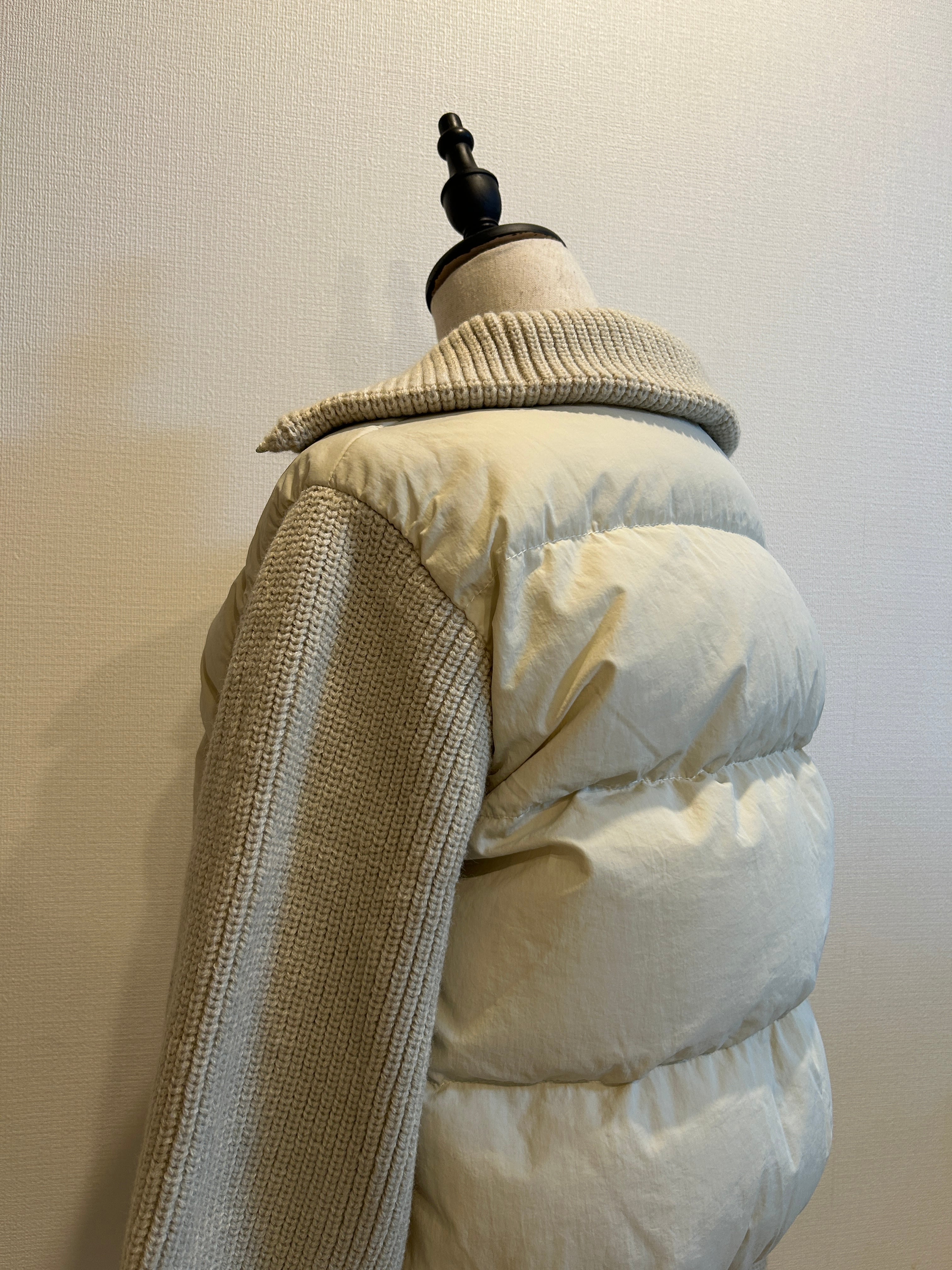 袖部分がニット仕様になっているのが特徴的なスタイリッシュなニットダウン。